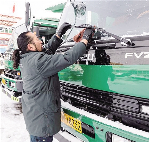 其美多吉在出班前檢查車輛。經(jīng)濟(jì)日?qǐng)?bào)-中國(guó)經(jīng)濟(jì)網(wǎng)記者 張 雪攝
