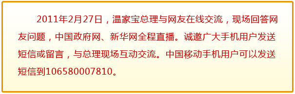 [中國移動手機報讀者手機尾號7917]:總理好,我是一個即將畢業(yè)的大學(xué)生,我的愿望是找到一份工作。 |
