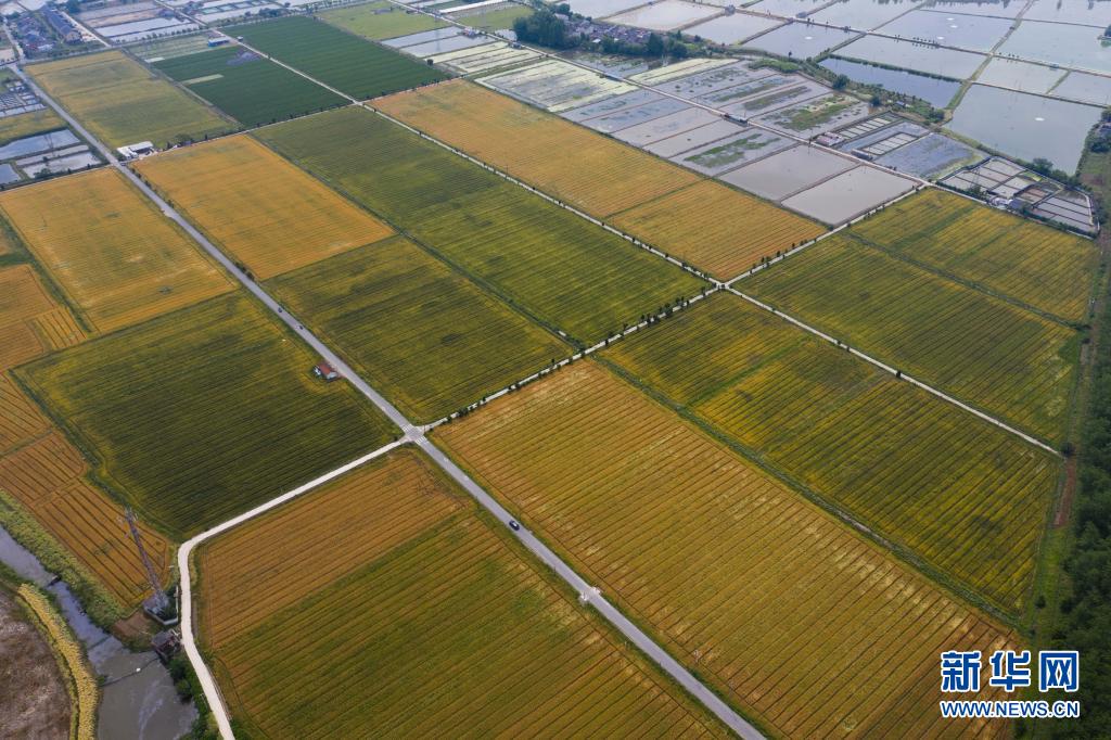 初夏時節(jié),浙江省湖州市吳興區(qū)東林鎮(zhèn)萬畝田野里的金黃的小麥、綠色的桑葉、彩色的花海還有白鷺等野生鳥類等構(gòu)成了一幅五彩田園的美麗景色。