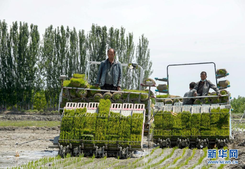 進(jìn)入5月,新疆溫宿縣的11萬(wàn)余畝水稻進(jìn)入插秧期。稻田間,插秧機(jī)往來(lái)穿梭,一片繁忙景象。