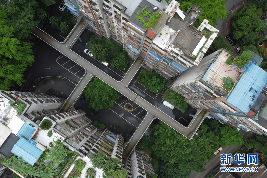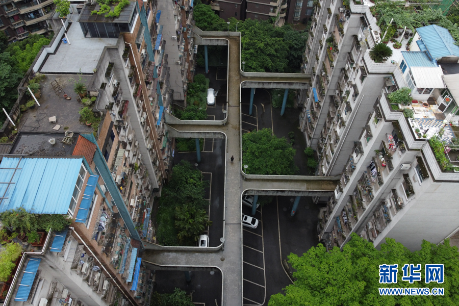 繼輕軌穿樓、高鐵穿樓、“貓頭鷹”立交橋之后,重慶又一建筑走紅網(wǎng)絡(luò)。近日,有網(wǎng)友發(fā)現(xiàn),重慶渝中區(qū)一個老小區(qū)幾棟居民樓的4樓中間,建起了連接各個單元的空中走廊,居民出入猶如空中漫步。新華網(wǎng) 耿駿宇 攝