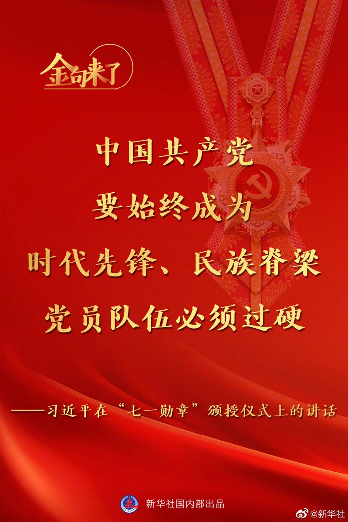 習(xí)近平說,新時(shí)代是需要英雄并一定能夠產(chǎn)生英雄的時(shí)代。中國共產(chǎn)黨要始終成為時(shí)代先鋒、民族脊梁,黨員隊(duì)伍必須過硬。希望受到表彰的同志珍惜榮譽(yù)、發(fā)揚(yáng)成績,爭取更大光榮。各級黨組織要從工作和生活上關(guān)心愛護(hù)功勛黨員,大力宣傳“七一勛章”獲得者的感人事跡和崇高品德,在全黨全社會(huì)形成崇尚先進(jìn)、見賢思齊的濃厚氛圍,激勵(lì)廣大黨員、干部牢記黨的性質(zhì)宗旨,牢記黨的初心使命,不懈奮斗,永遠(yuǎn)奮斗,在全面建設(shè)社會(huì)主義現(xiàn)代化國家新征程上,向著第二個(gè)百年奮斗目標(biāo)、向著中華民族偉大復(fù)興的中國夢奮勇前進(jìn)!?
