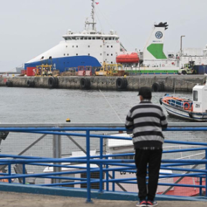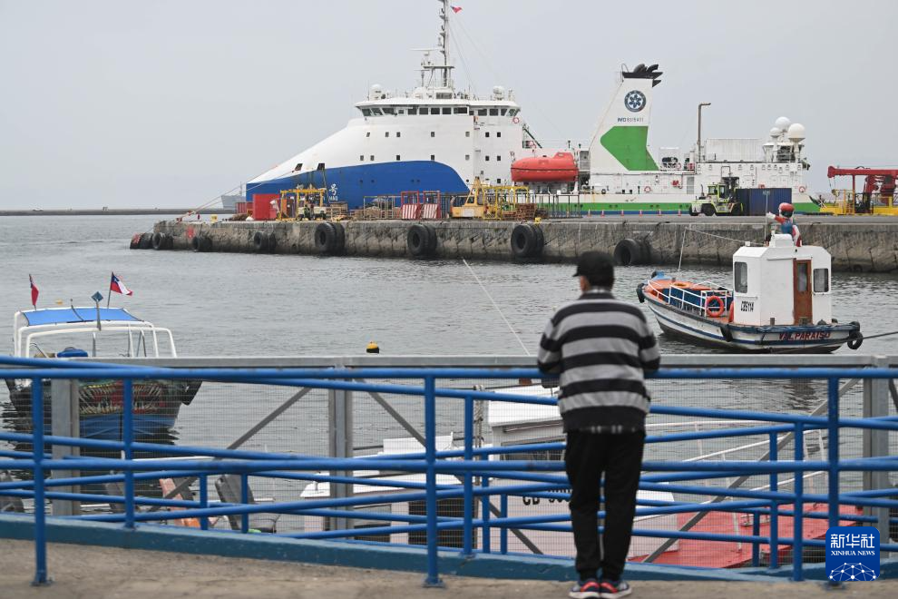 这是1月19日拍摄的停靠于智利中部瓦尔帕莱索港的中国“探索一号”科考船。新华社发(豪尔赫·比列加斯摄)
