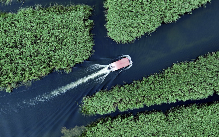 泛舟白洋淀。新华社记者 苏凯洋 摄