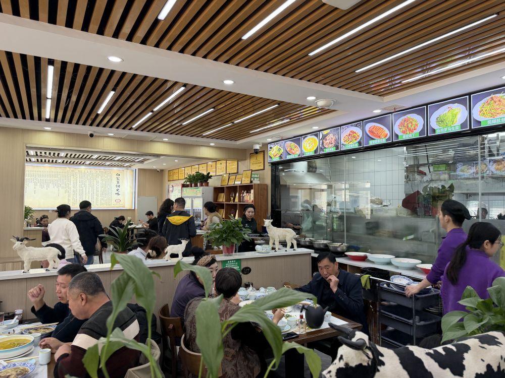 顾客在白家罩饼用餐。邱犇摄