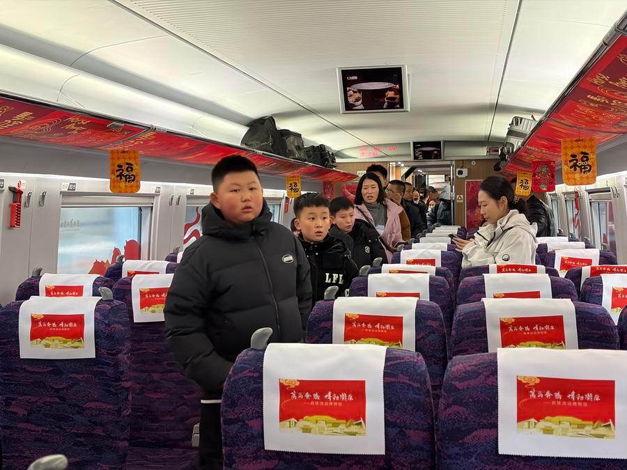 带着孩子返乡的河南乘客徐静说:“在车上就能‘触摸’到历史,孩子玩得开心,我也长了知识。”