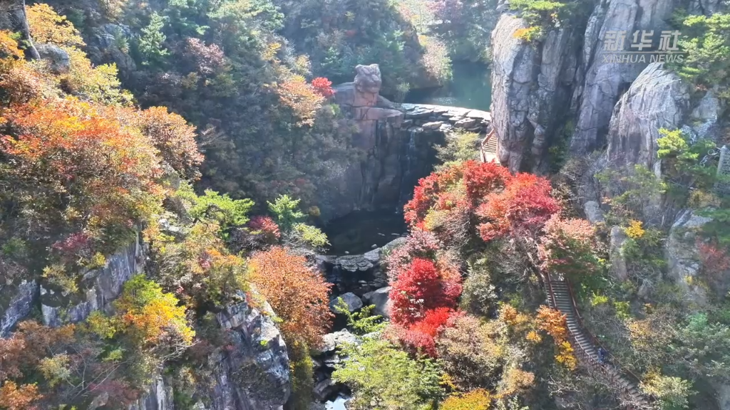 远眺崂山深处,百年银杏静立于山峦之间。每当山风拂过,黄叶翩跹如蝶,将整片山谷渲染得明亮而温暖。