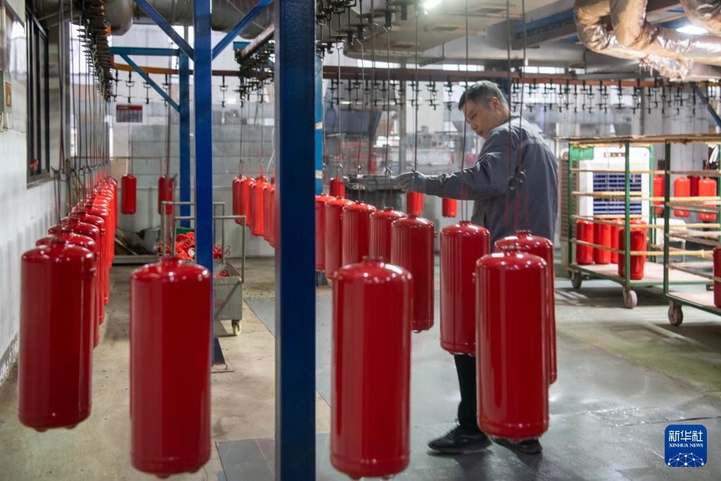 2月24日,在位于浙江省余姚市黄家埠镇的宁波凯旋消防器材有限公司生产车间,员工在检验消防器材零件。