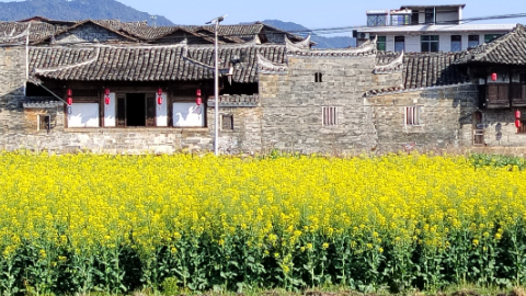 近日,江西省永丰县恩江镇泽泉村油菜花竞相绽放,金灿灿的花海与蓝天白云、村庄民居交相辉映,构成一幅生机勃勃的春日画卷,吸引众多游客前来踏青赏花、拍照打卡,成为当地乡村旅游的新亮点。