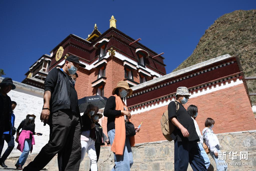 7月12日,游客在拉卜楞寺參觀。新華社記者 陳斌 攝