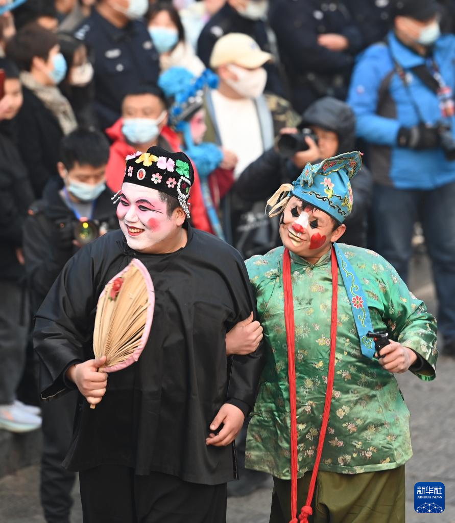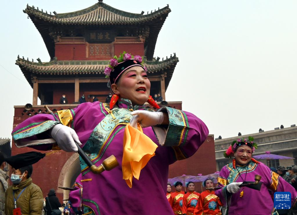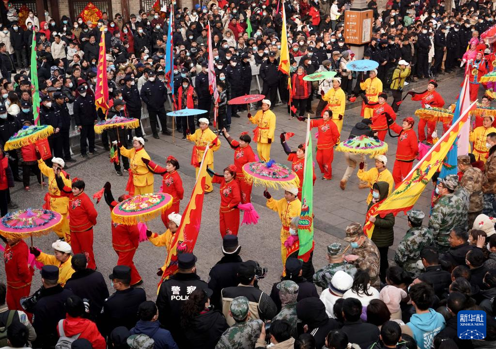 当日是农历正月十六,在河南省浚县举行的正月古庙会上,几十支社火团队轮番表演,踩高跷、扭秧歌、耍狮子,锣鼓喧天,热闹非凡,形成一道富有特色的中原文化景观。河南省浚县的正月古庙会已有1600多年历史,有“华北第一庙会”之称,被誉为民俗文化的“活化石”,是中国民间文化保护工程项目、国家级非物质文化遗产。