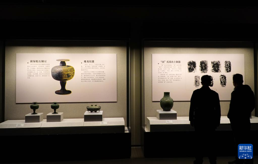2月9日,在孔子博物馆举行的山东文物精品展上,参观者在观看济宁市博物馆收藏的春秋薛国列鼎。