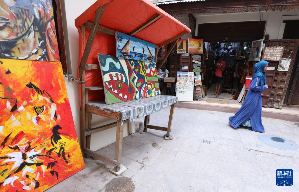 2月21日,人们在桑给巴尔石头城海边休闲。