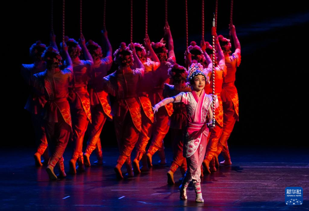 3月21日,在位于山东省济南市的山东省会大剧院,演员表演杂技节目《韵·花样顶技》。