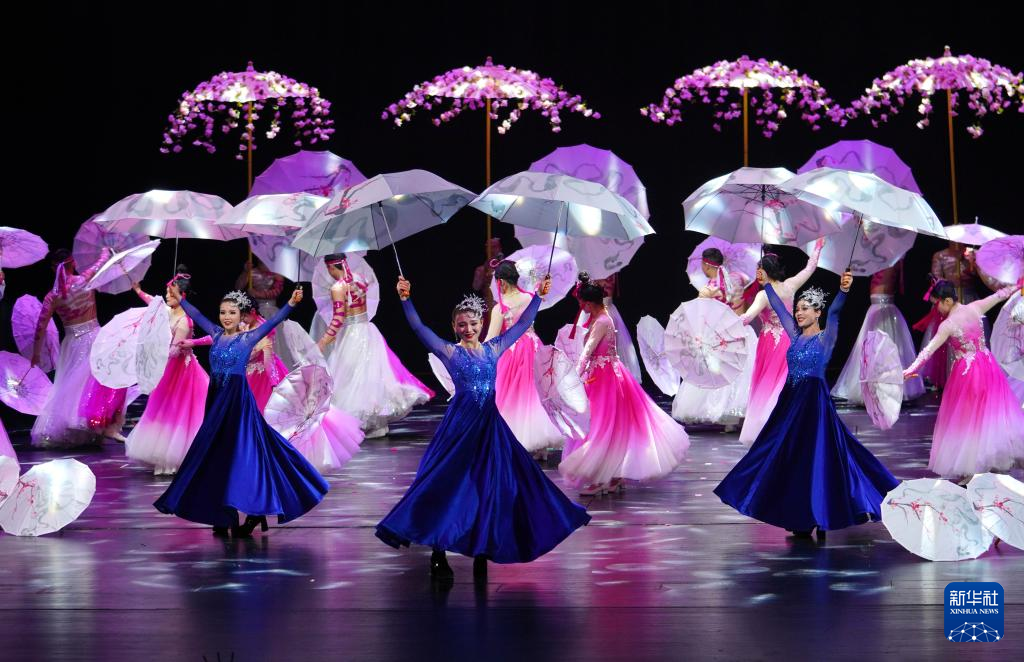 3月21日,在位于山东省济南市的山东省会大剧院,演员表演魔术节目《飞花令·伞》。