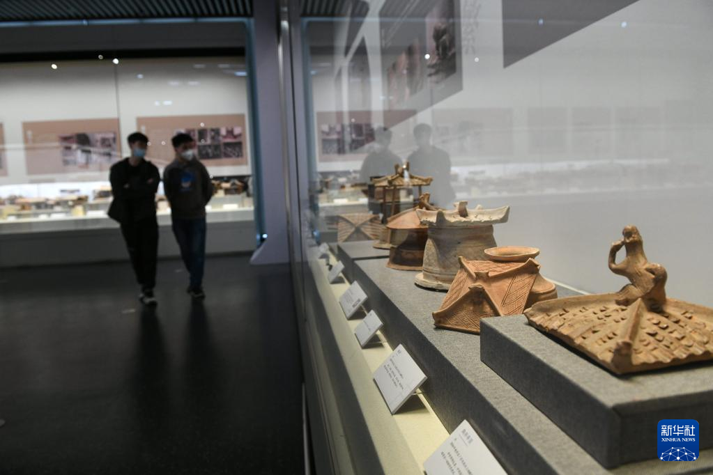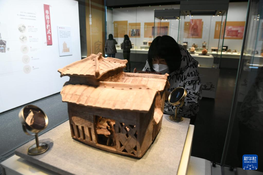 3月29日,参观者在“羊城烟火气——广州出土汉代建筑模型明器展”现场参观。