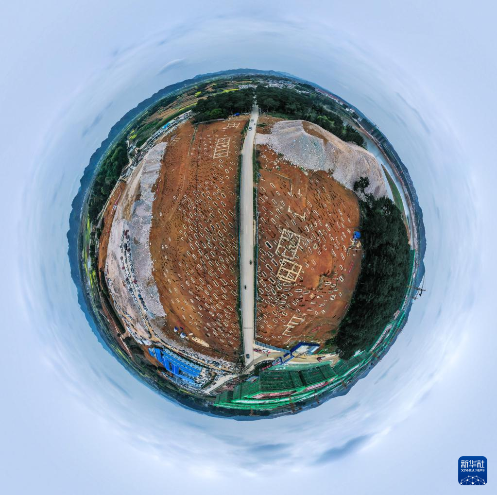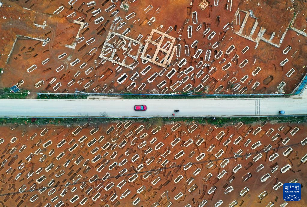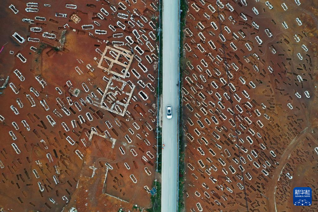 3月30日拍摄的贵州贵安新区大松山墓群挖掘现场(无人机全景照片)。