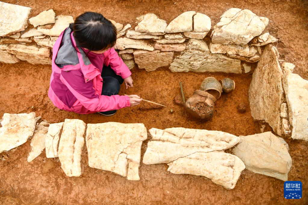 3月30日拍摄的贵州贵安新区大松山墓群挖掘现场。