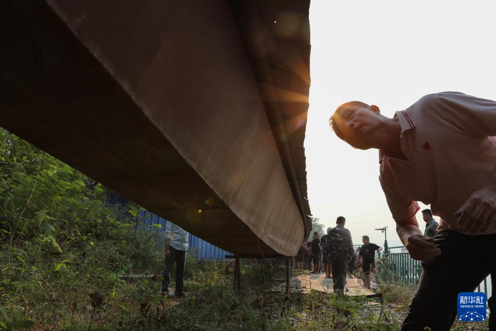 4月1日,景洪市勐罕镇曼搭村村民在检查龙舟。
