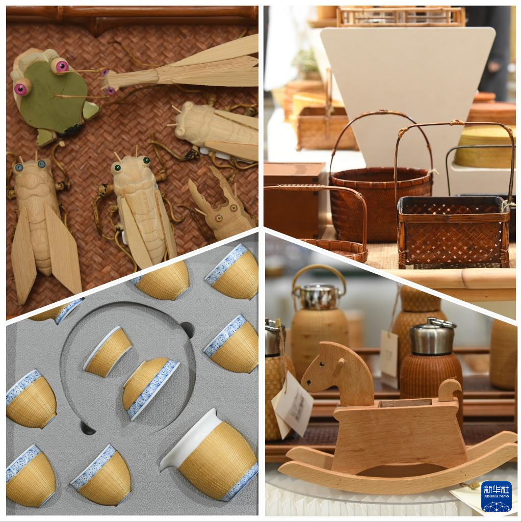 姜鹏团队设计的部分竹产品(4月3日摄)。