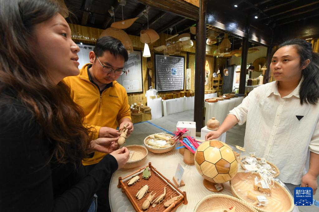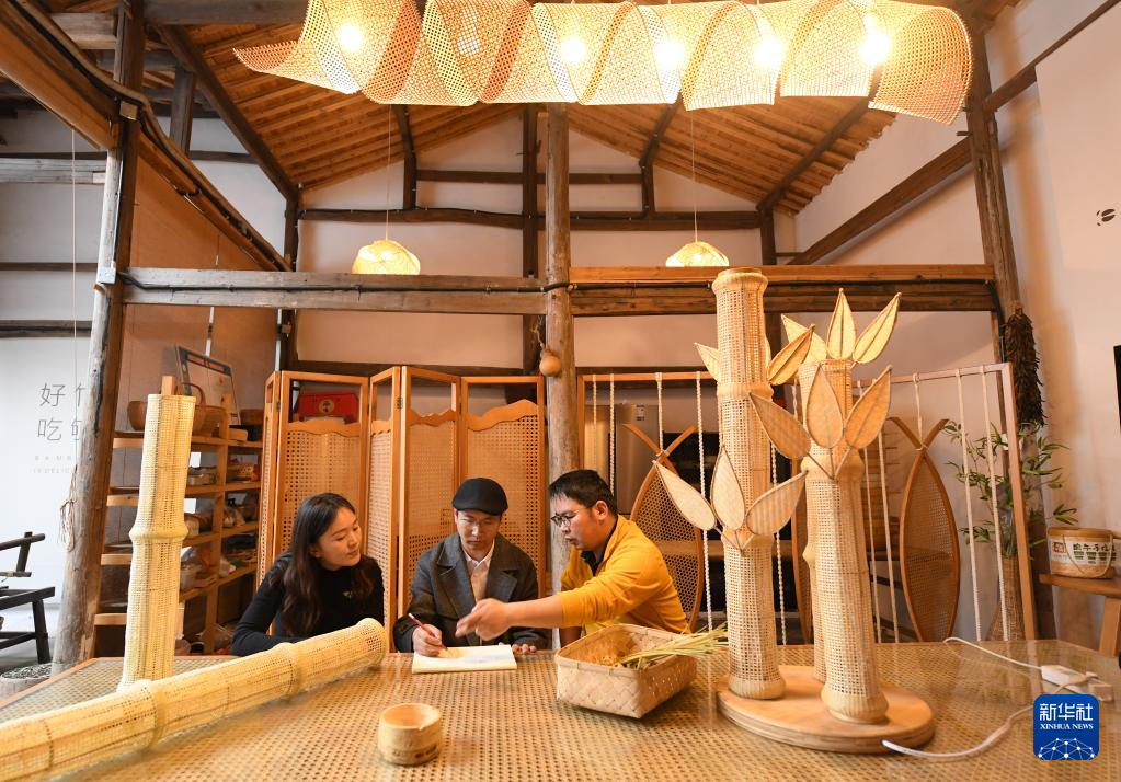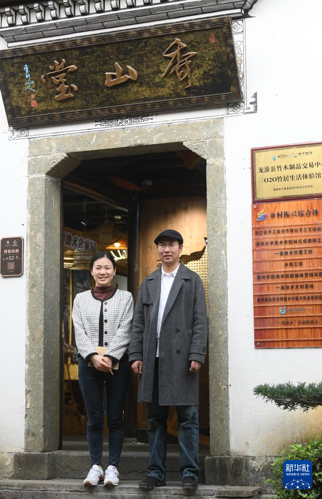 2018年,在杭州一个动画设计公司工作的青年姜鹏和妻子邹霞辞去大城市的工作,回到老家龙游,在古村溪口租下一栋老房子进行创业。夫妻俩发挥设计专长,为家乡农产品代言。同时,两人又结合当地竹资源丰富的特点,以“导师帮带”模式,邀请专业院校老师和设计师共同开发竹产品,带动周边20余名工匠、170多户村民参与产品制作。目前,他们的团队共开发了2600款竹产品,农特产年销售额1500万元,参与村民户均年增收1.8万元左右。