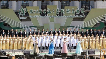 4月5日,演员在公祭轩辕黄帝典礼上演唱歌曲《黄帝颂》。
