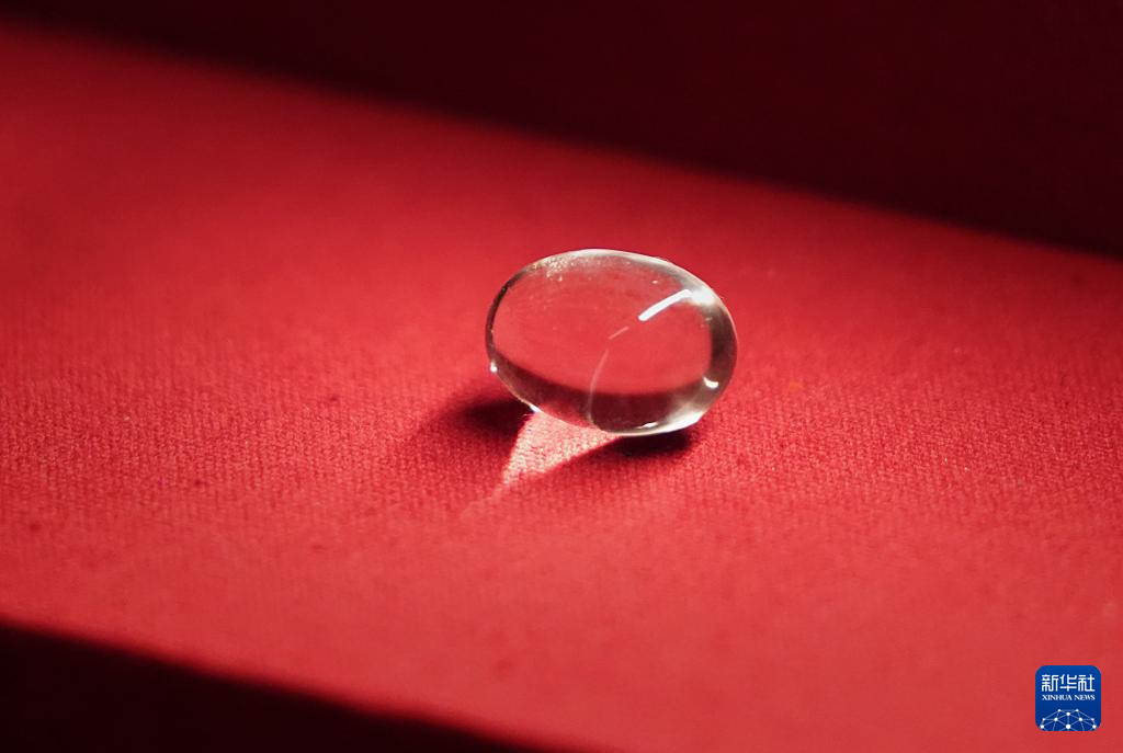 这是曹操高陵遗址博物馆内展出的水晶珠(4月24日摄)。