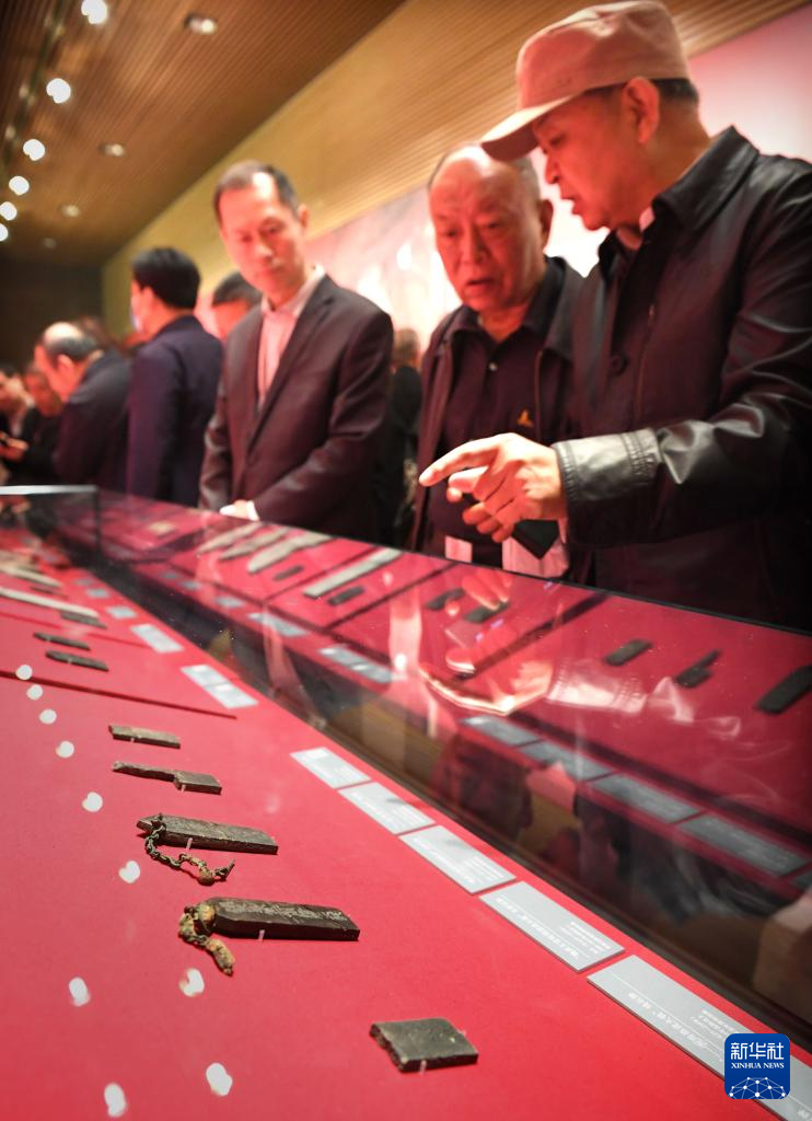 这是曹操高陵遗址博物馆内展出的铁甲片(4月22日摄)。