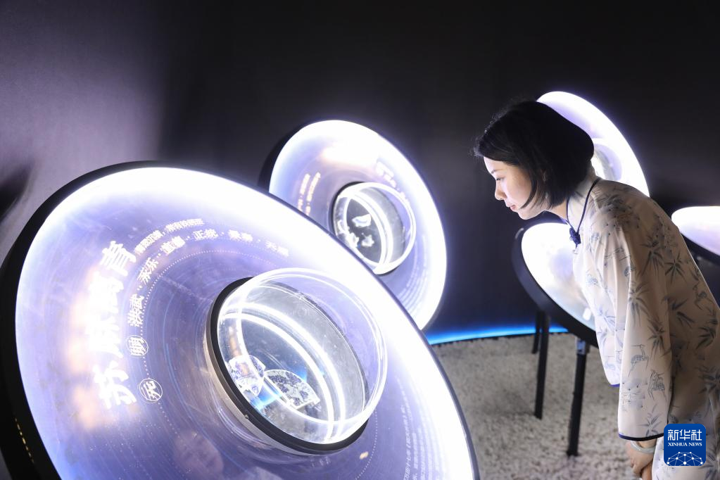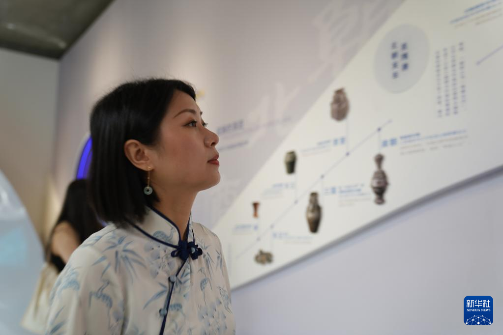 4月19日,在江西景德镇御窑博物馆,蔡文娟观看青花相关的展览。