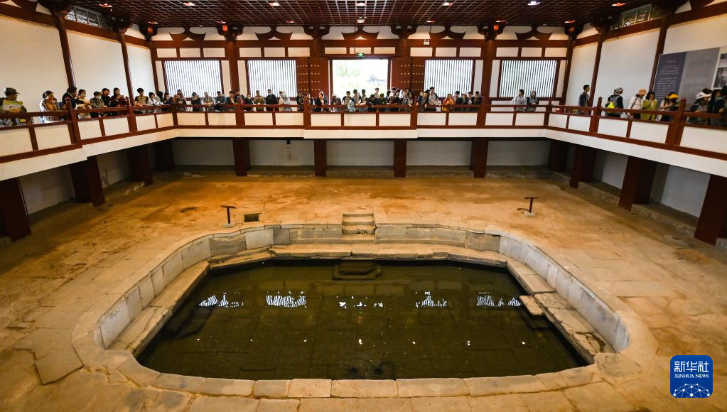 游客在西安华清宫景区星辰汤参观游览(5月5日摄)。