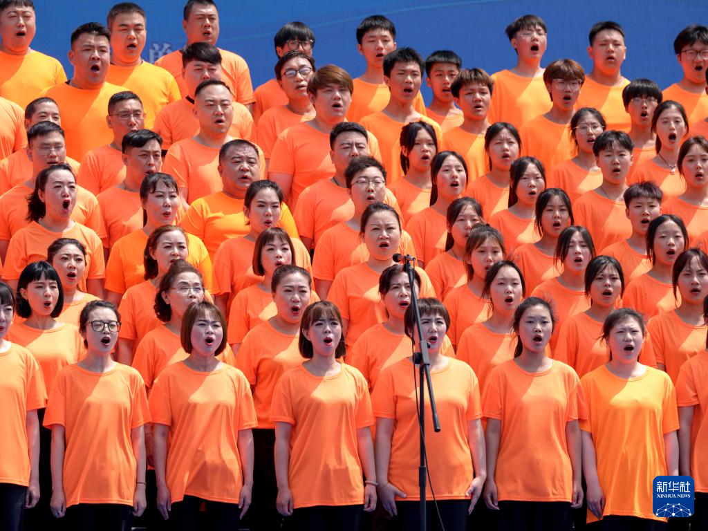 5月22日,参演人员在艺术节上合唱。