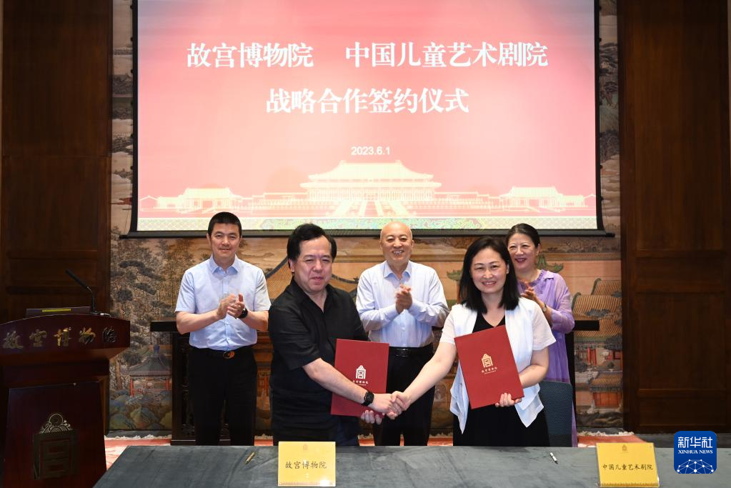 当日,故宫博物院与中国儿童艺术剧院在北京举行战略合作签约仪式。双方将在剧目创排、打造品牌、文创产品开发等方面加强合作,携手打造以故宫为题材的儿童戏剧精品,利用舞台艺术形式,让中华优秀传统文化走进中国孩子的心里,也让更多少年儿童走进故宫博物院,走进中国儿童剧场。