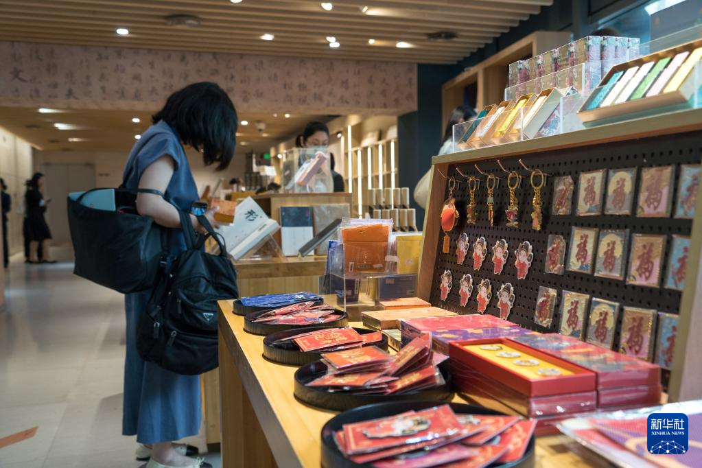6月10日,活动嘉宾在成都博物馆内选购“汉字中国:方正之间的中华文明展”周边文创产品。