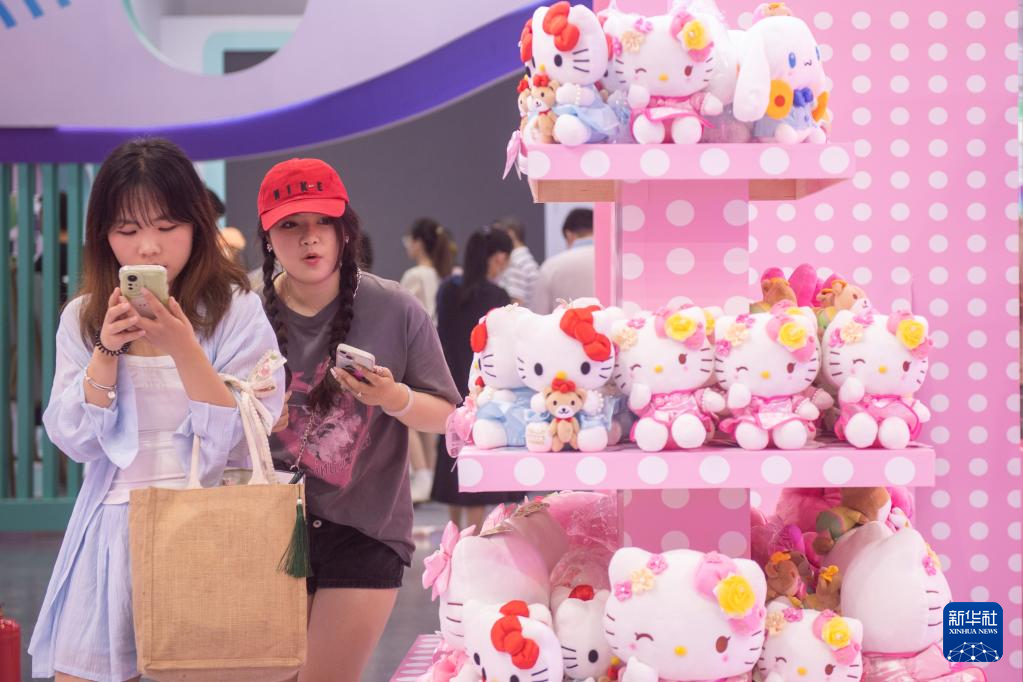 6月20日,观众在第十九届中国国际动漫节产业博览会上参观动漫主题展台。