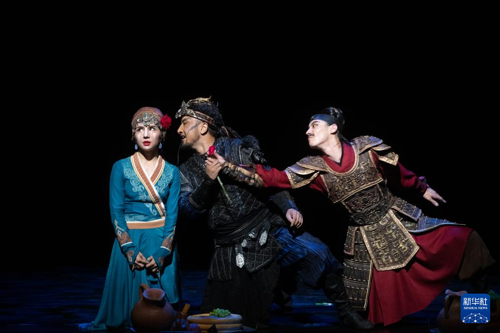 当日,舞剧《五星出东方》在武汉市湖北剧院上演。该剧的构想源于从我国新疆和田尼雅遗址出土的国家一级文物“五星出东方利中国”汉代织锦护臂。