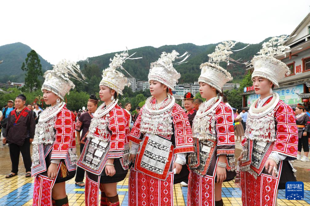 7月23日,盛装参与贵州剑河仰阿莎文化节活动的苗族群众。