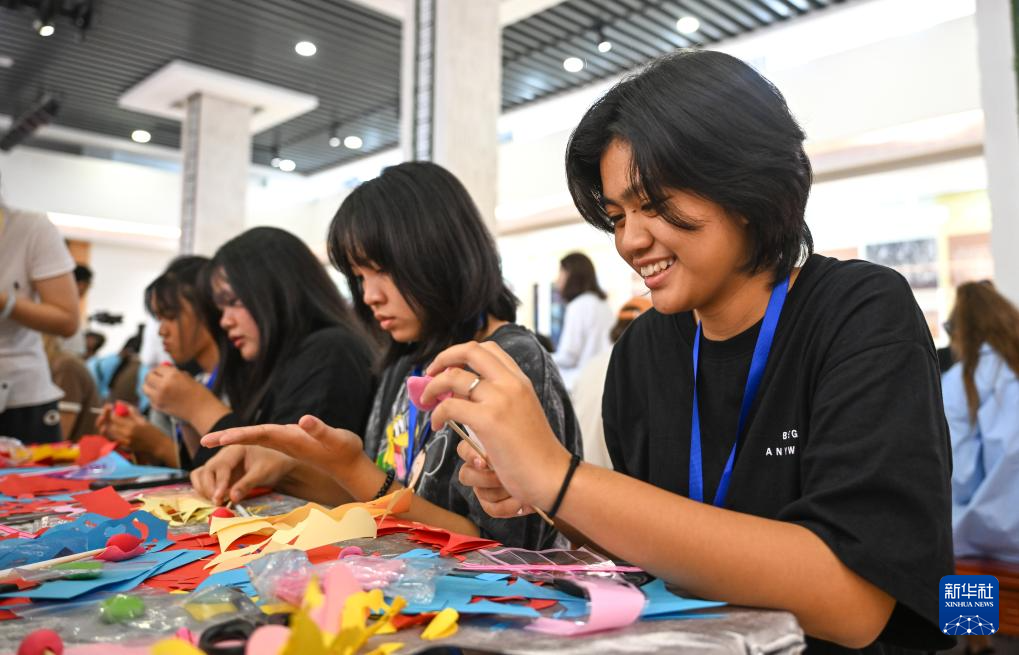 当日,来自2023呼和浩特国际青少年友好交流营的百余名中外师生来到内蒙古呼和浩特市内蒙古展览馆,学习体验和林格尔剪纸、青城面塑、马头琴制作等传统非遗技艺。