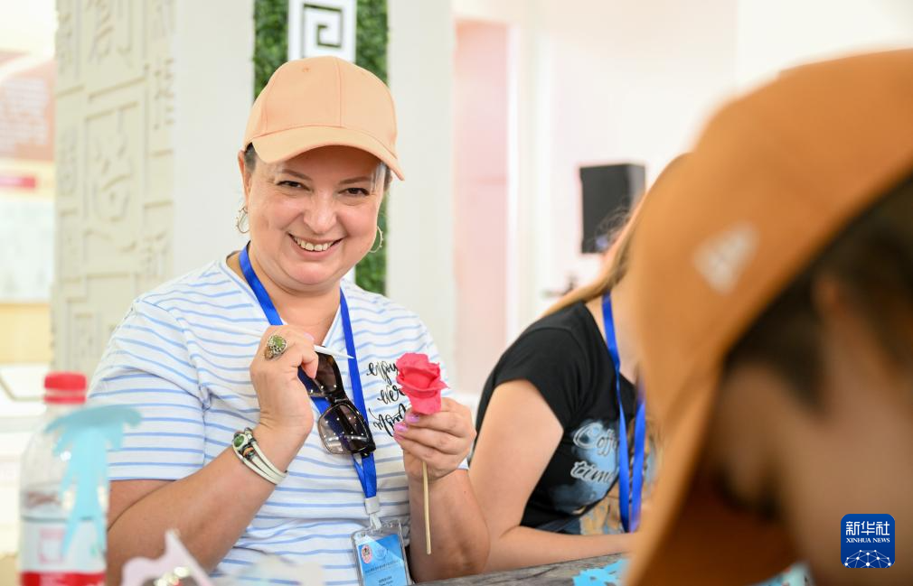 7月30日,来自俄罗斯的学生在活动中制作面塑。