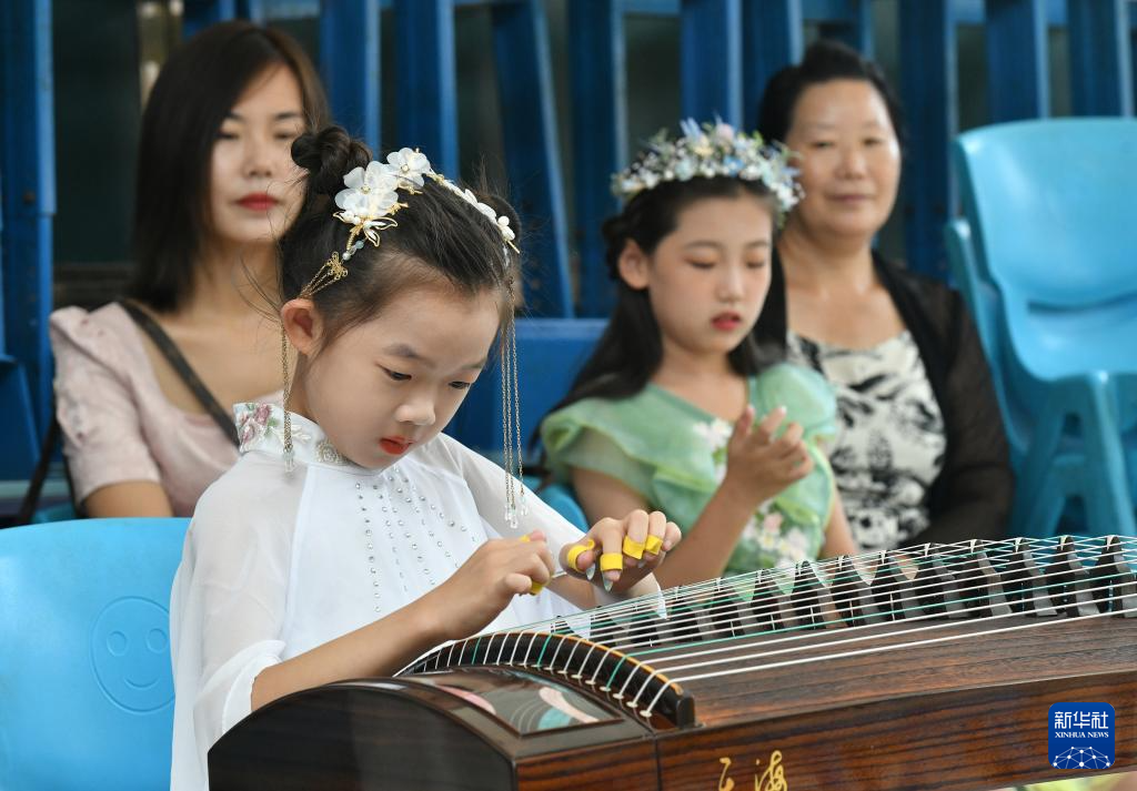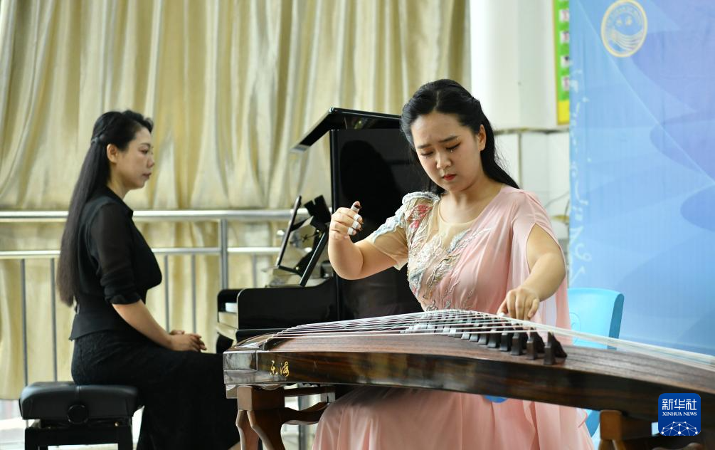 8月16日,一名参赛选手在演奏古筝。