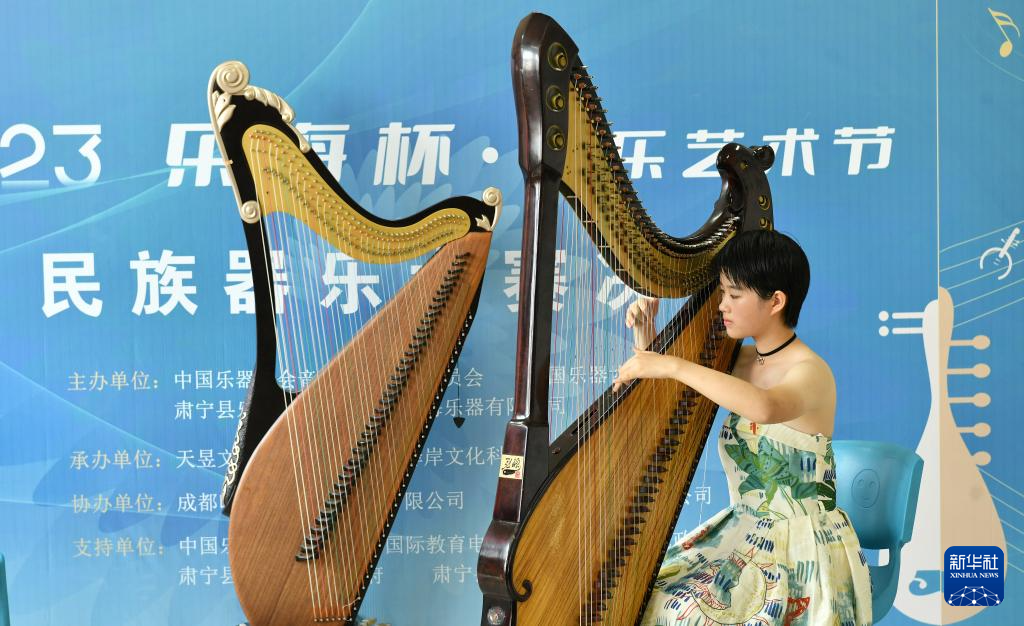 8月16日,参赛选手在箜篌比赛中。