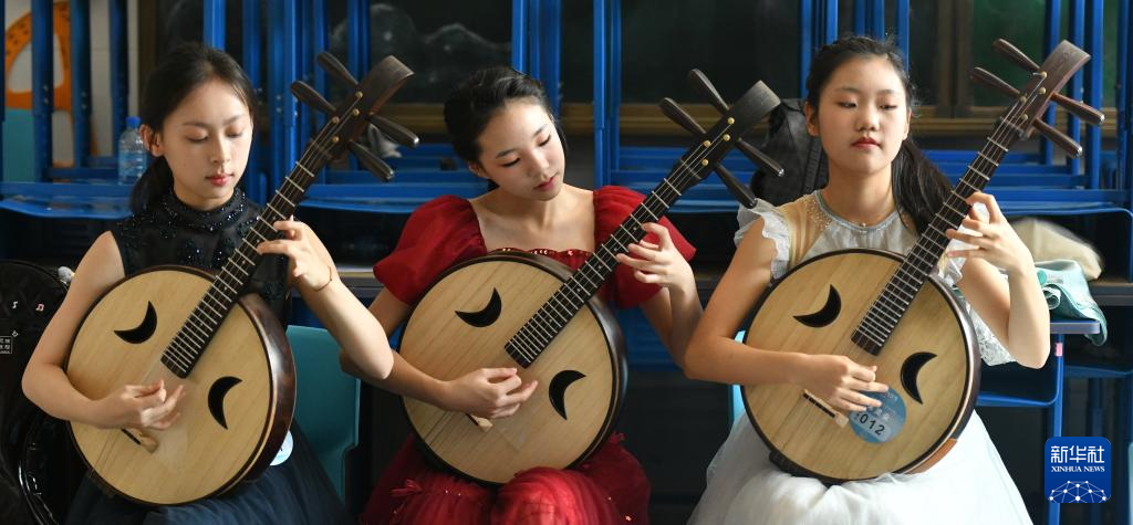 8月16日,参赛选手在弹奏阮。