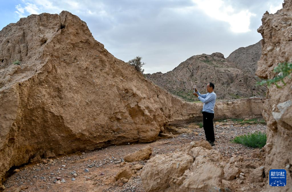 8月20日,董海宁巡查贺兰山沿线的明长城永宁段时用手机拍照记录。