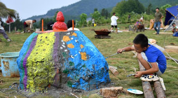 8月20日,董海宁介绍长城墙体修建时用到的芨芨草。