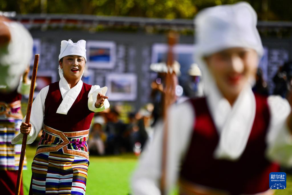 在拉萨市林周县边交林乡当杰村,演员在第十六届西藏珠穆朗玛摄影大展开幕式上表演节目(9月8日摄)。