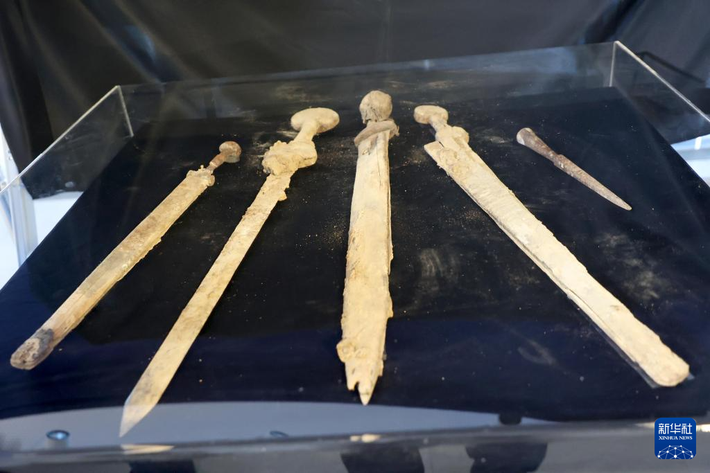 这是9月6日在耶路撒冷举行的新闻发布会上拍摄的新发现的古罗马时代兵器。