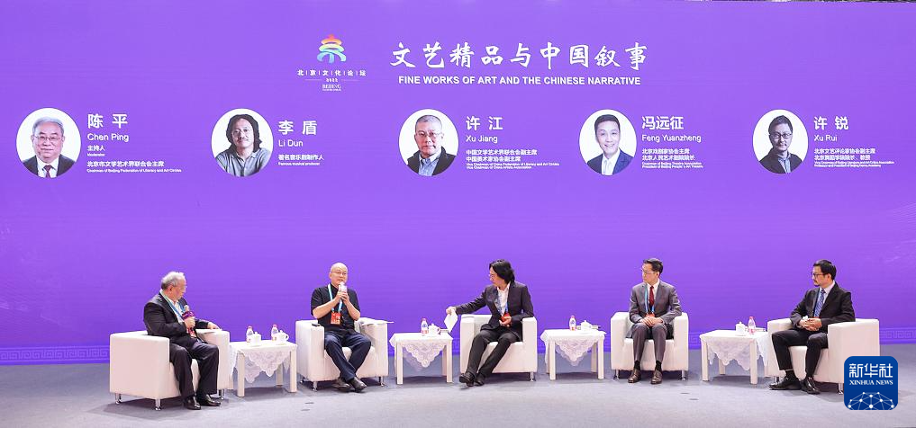 这是9月15日拍摄的“以文化人:文艺价值与社会生活”平行论坛的“文艺精品与中国叙事”圆桌对话现场。