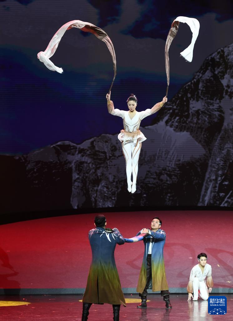 10月24日,中国杂技演员在表演《雄鹰—抖杠》。