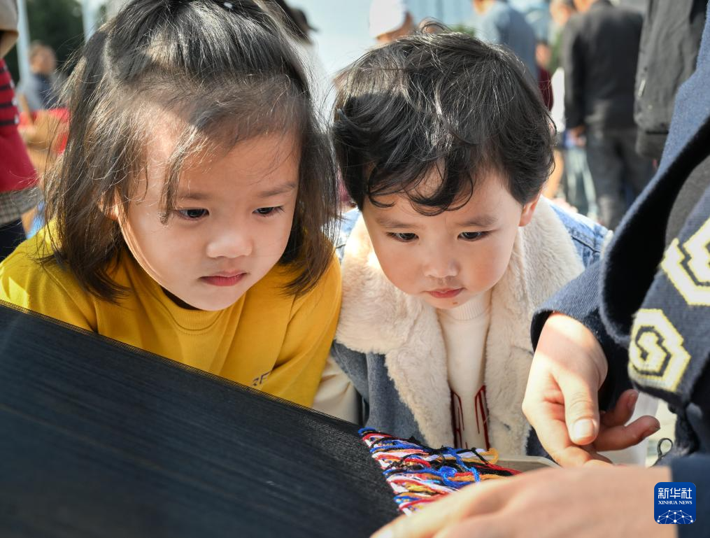 10月28日,小朋友在观看“西兰卡普”制作。