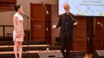 11月22日,地秧歌艺人在河北省滦州市小闫营小学指导学生练习地秧歌。