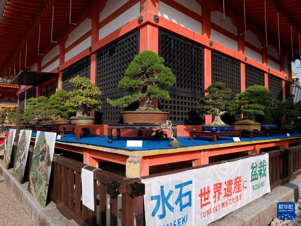 为纪念中日和平友好条约缔结45周年,中日盆栽水石展24日在京都清水寺开幕。尽显自然山水之美的盆栽作品与寺庙古建筑融为一体,吸引了大批游客驻足观赏。